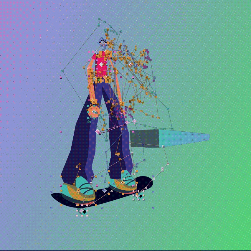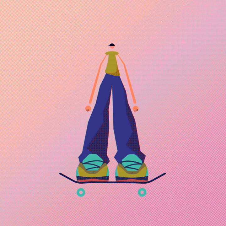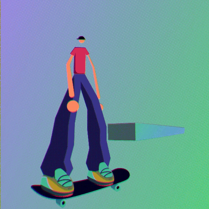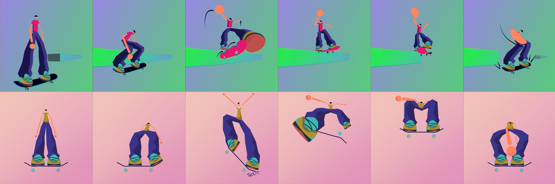 The idea was to study character animation using skateboarding as the subject. I used every tool in my bag to create these animations like: cel animation, 3D (for reference angles), illustration, and compositing.